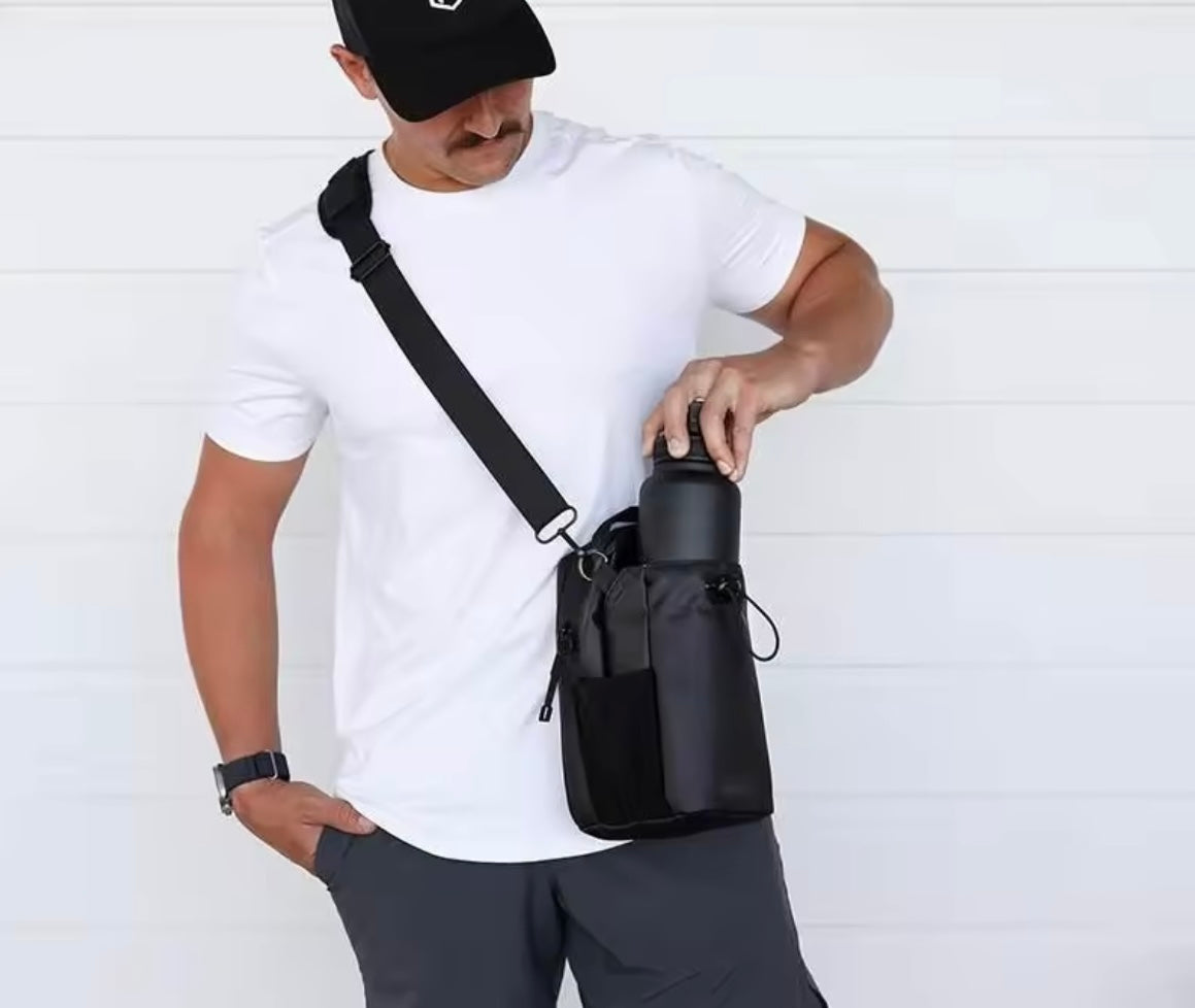 La bolsa Fitness Bottle Bag es perfecta para quienes buscan comodidad y organización al hacer deporte o actividades diarias. Su diseño funcional te permite transportar tu botella y otros objetos personales de forma segura.
